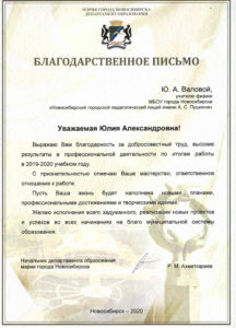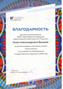 - Диплом победителя в номинации «Учитель года-2025», Новосибирская ассоциация лицеев и гимназий, 20 мая 2025 г.