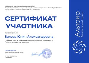 - Участие в Школе наставников в проектной деятельности Регионального центра «Альтаир», 24-27 августа 2025 г.
