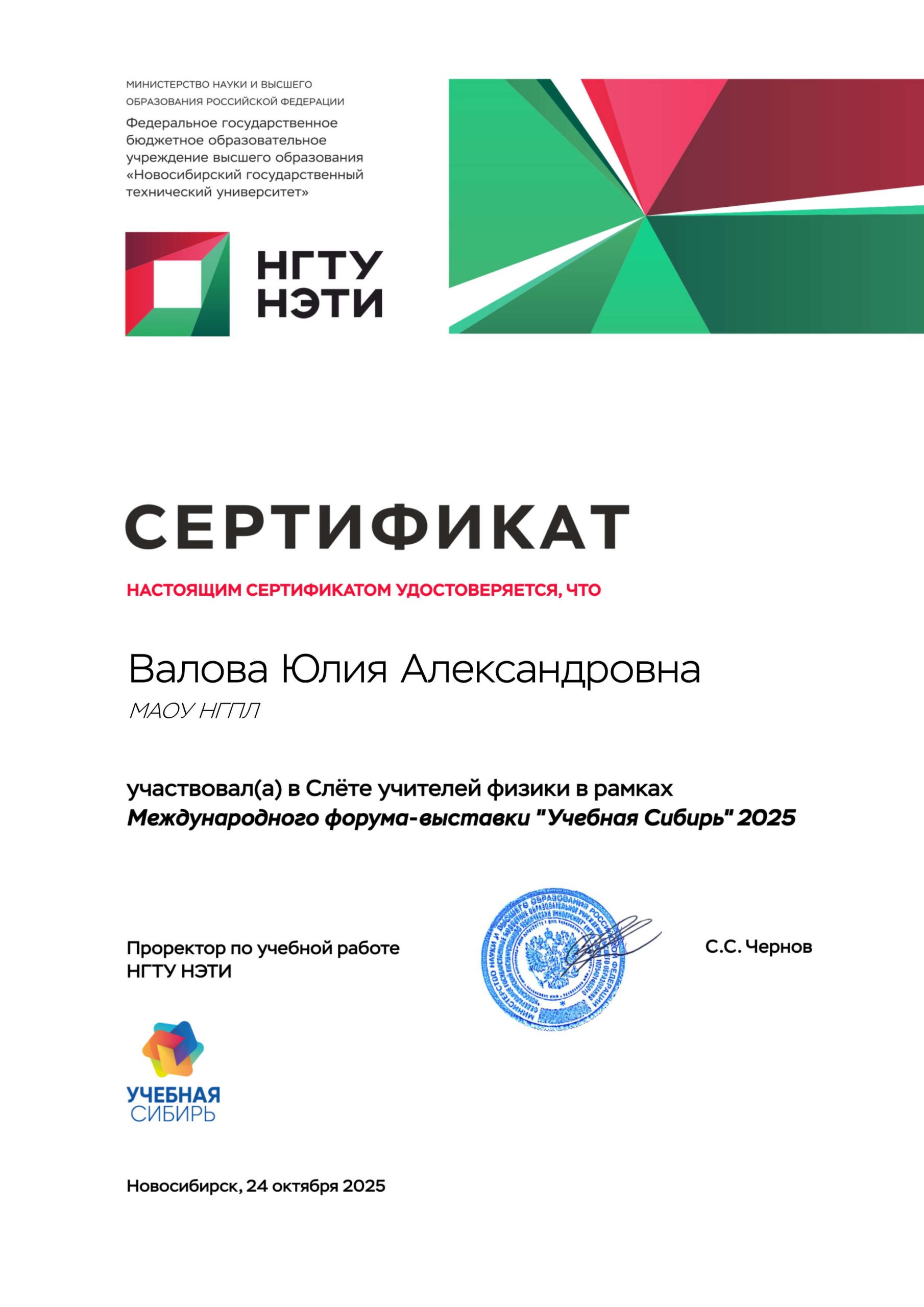 - Форсайт-сессия от НГТУ НЭТИ для учителей физики. Международный форум-выставка «Учебная Сибирь», октябрь 2025 г.