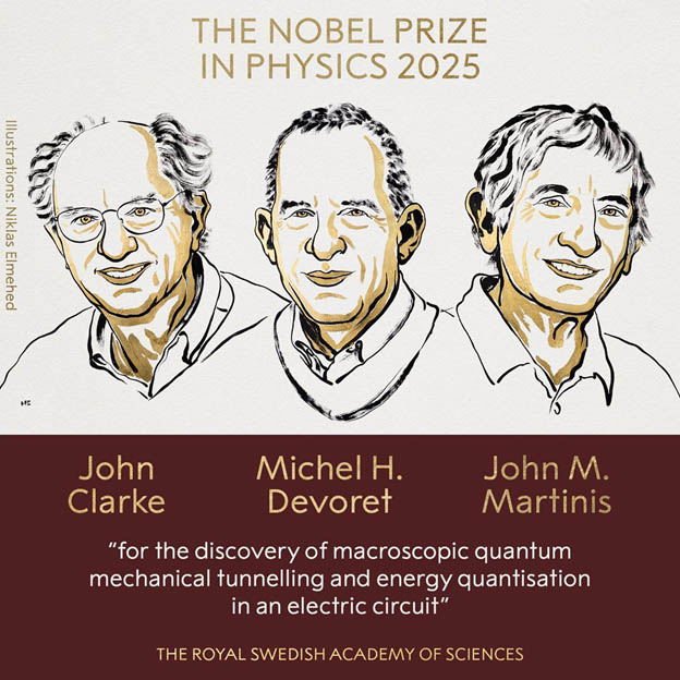 В этом году ими стали трое ученых, профессора Калифорнийского университета (США): Джон Кларк и Джон М. Мартинис, а также их коллега, уроженец Франции Мишель Деворе. Награду они получили «за открытие квантово-механического туннелирования на макроуровне и квантования энергии в электрической цепи» и демонстрацию квантовой физики в действии.