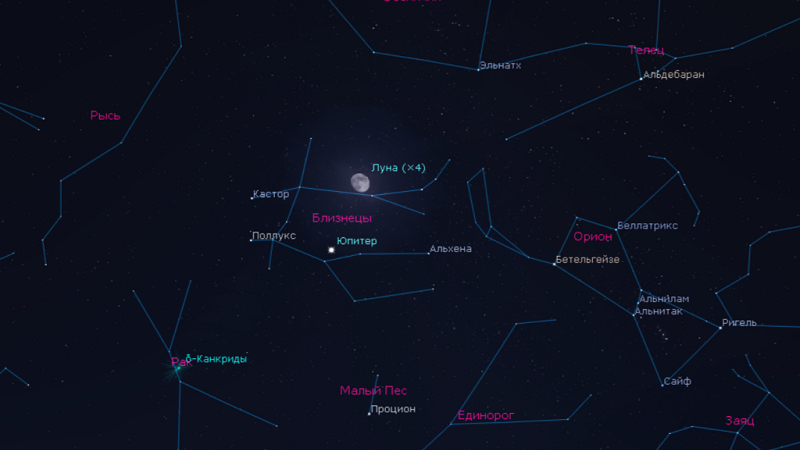 Оба светила расположатся в созвездии Близнецов. Наблюдать их можно будет всю ночь: вечером — на востоке, а под утро — низко над горизонтом на северо-западе.